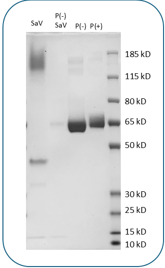 Human HexA protein has the predicted molecular weight of 60 kD and human HexB protein has the predicted molecular weight of 59.8 kD . Under DTT-reducing conditions, both proteins migrate at approximately 65 kDa on SDS-PAGE.