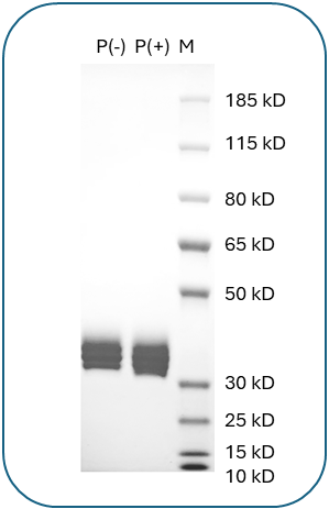 This protein has a predicted molecular weight of 32.6 kDa. Under DTT-reducing conditions, the protein migrates at approximately 35-40 kDa on SDS-PAGE.