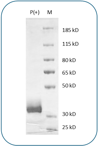 This protein has a predicted molecular weight of 28.6 kDa. Under DTT-reducing conditions, the protein migrates at approximately 30-35 kDa on SDS-PAGE.