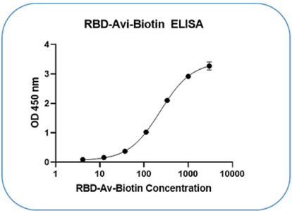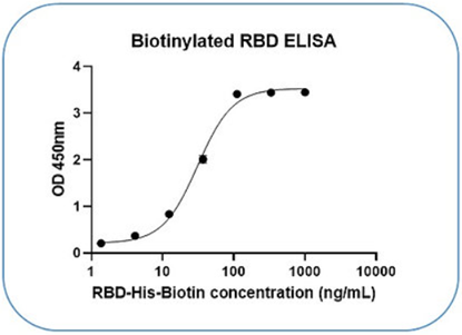 Recombinant SARS-CoV-2 S protein RBD (Arg319-Phe541) with C-terminus His-Avi tag was expressed in 293 Cells. This protein was site-specifically labeled with Biotin by BirA ligase.