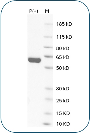 This protein has a predicted molecular weight of 51.7 kDa. Under DTT-reducing conditions, the protein migrates at approximately 60 kDa on SDS-PAGE.