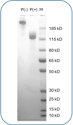 | Molecular Weight | This protein has a predicted molecular weight of 100.7 kDa. Under DTT-reducing conditions, the protein migrates at approximately 120-150 kDa on SDS-PAGE. |