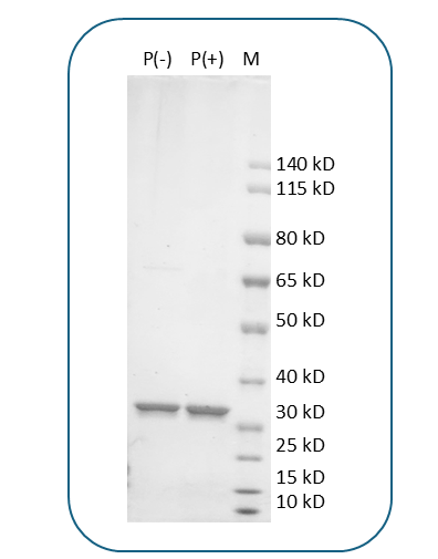 This protein has a predicted molecular weight of 35.9 kDa. Under DTT-reducing conditions, the protein migrates at approximately 35 kDa on SDS-PAGE.