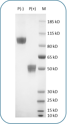 This protein has a predicted molecular weight of 41.4 kDa. Under DTT-reducing conditions, the protein migrates at approximately 50 kDa on SDS-PAGE.