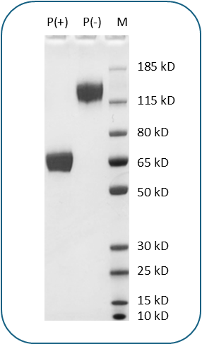 This protein has a predicted molecular weight of 48.8 kDa. Under DTT-reducing conditions, the protein migrates at approximately 65 kDa on SDS-PAGE.
