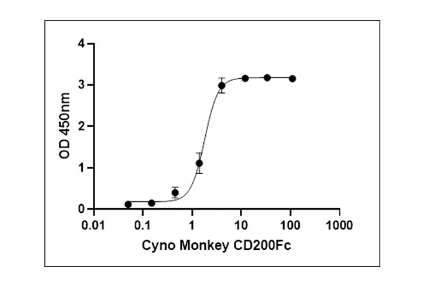 Recombinant Cynomolgus Monkey CD200 (Gln56-Gly257) with C-terminus Fc tag is expressed in CHO cells.