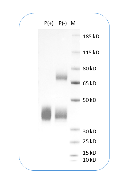 Molecular WeightThe protein has a predicted molecular weight of 34kDa. Under DTT-reducing conditions, it migrates at approximately 35-45 kDa.