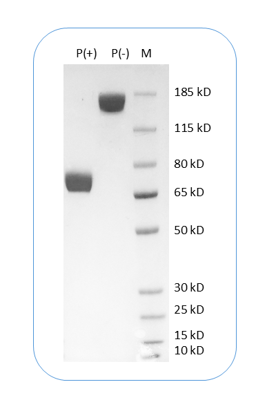 The protein has a predicted molecular weight of 58kDa. Under DTT-reducing conditions, it migrates at approximately 70 kDa.